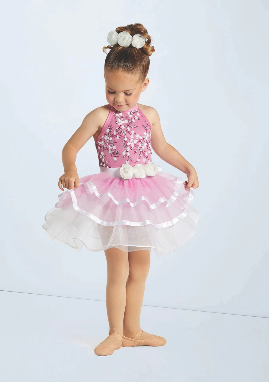 Layered tricot tutu with satin ribbon trim