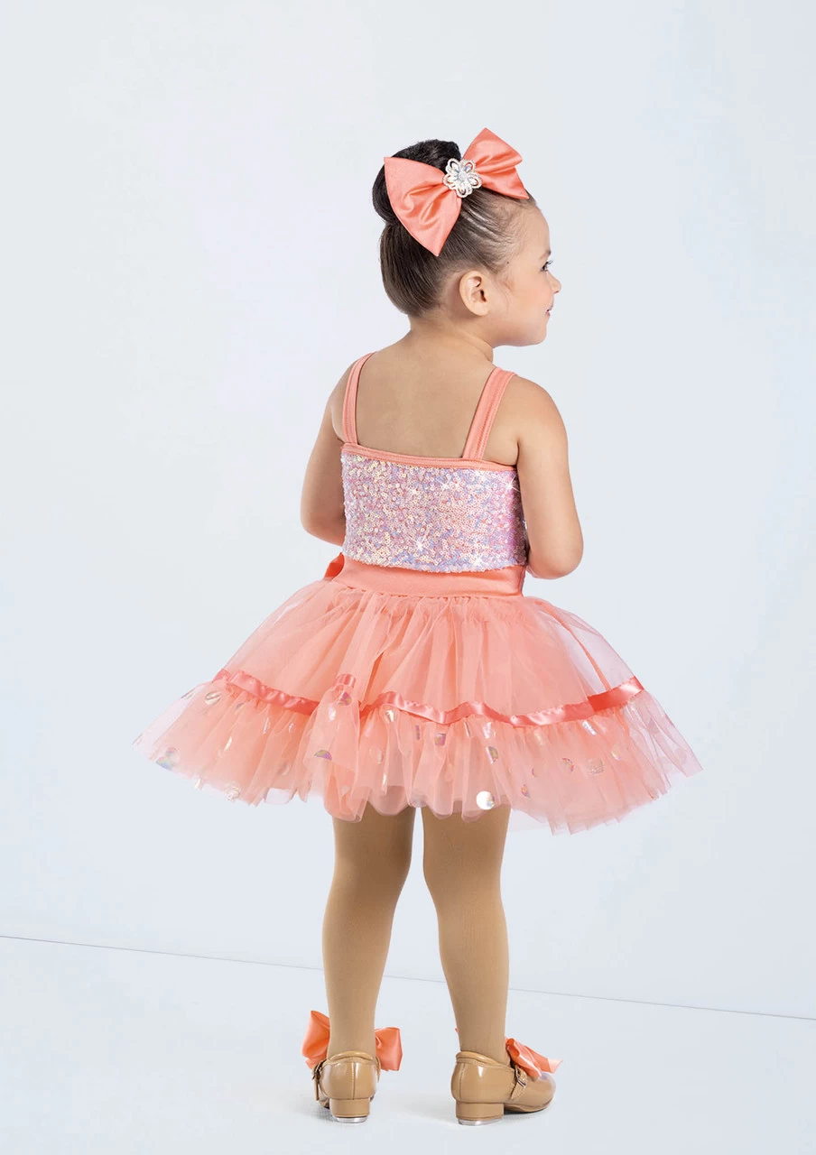 -Tricot top skirt features satin ribbon and polka dot mesh