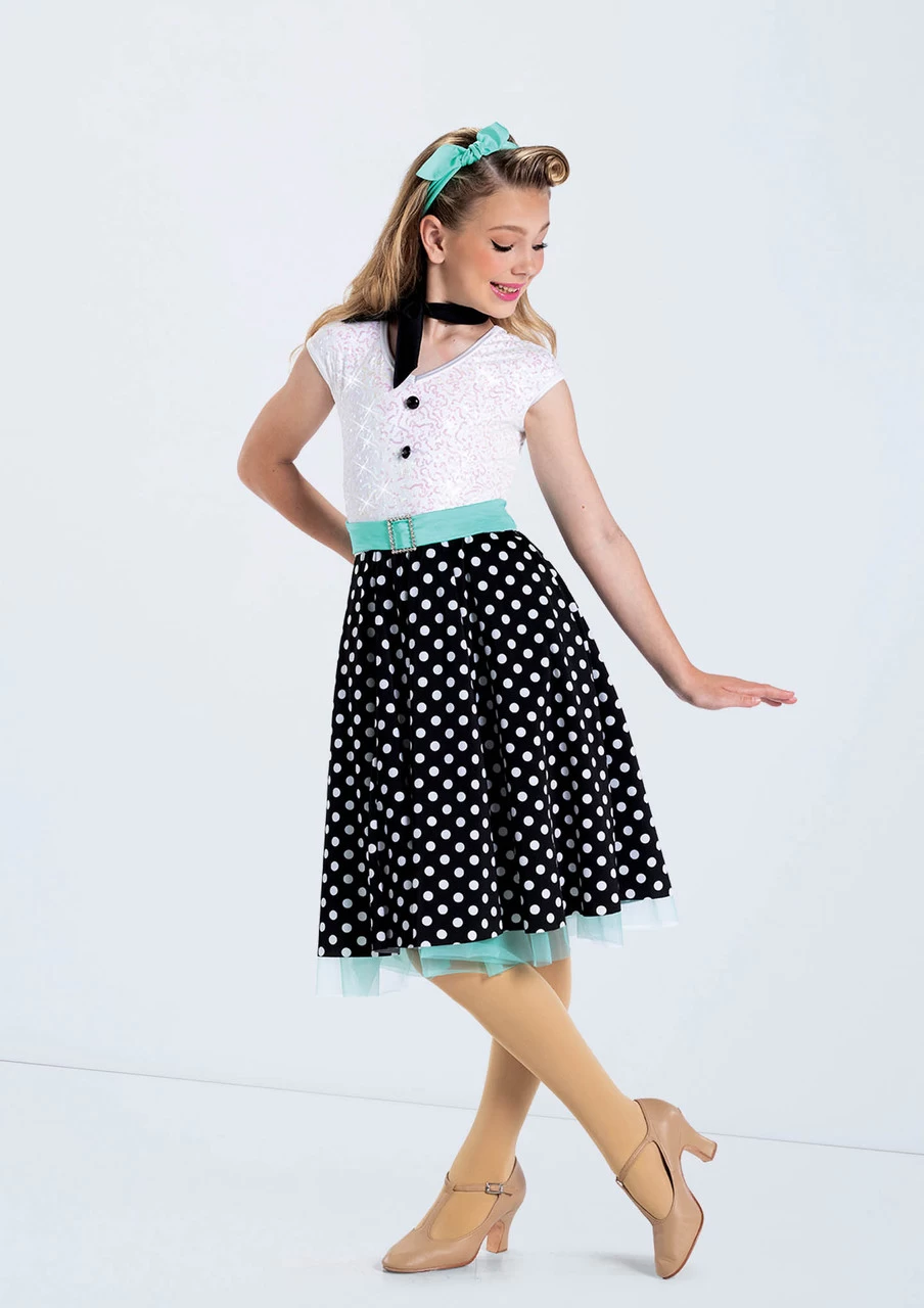-Polka dot spandex midi skirt over tricot