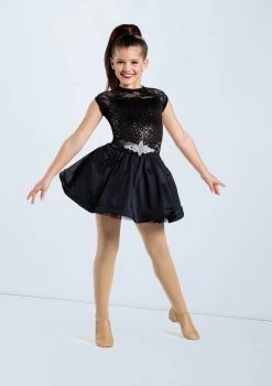 -Cap sleeve dress with a 4-way stretch sequin spandex bodice