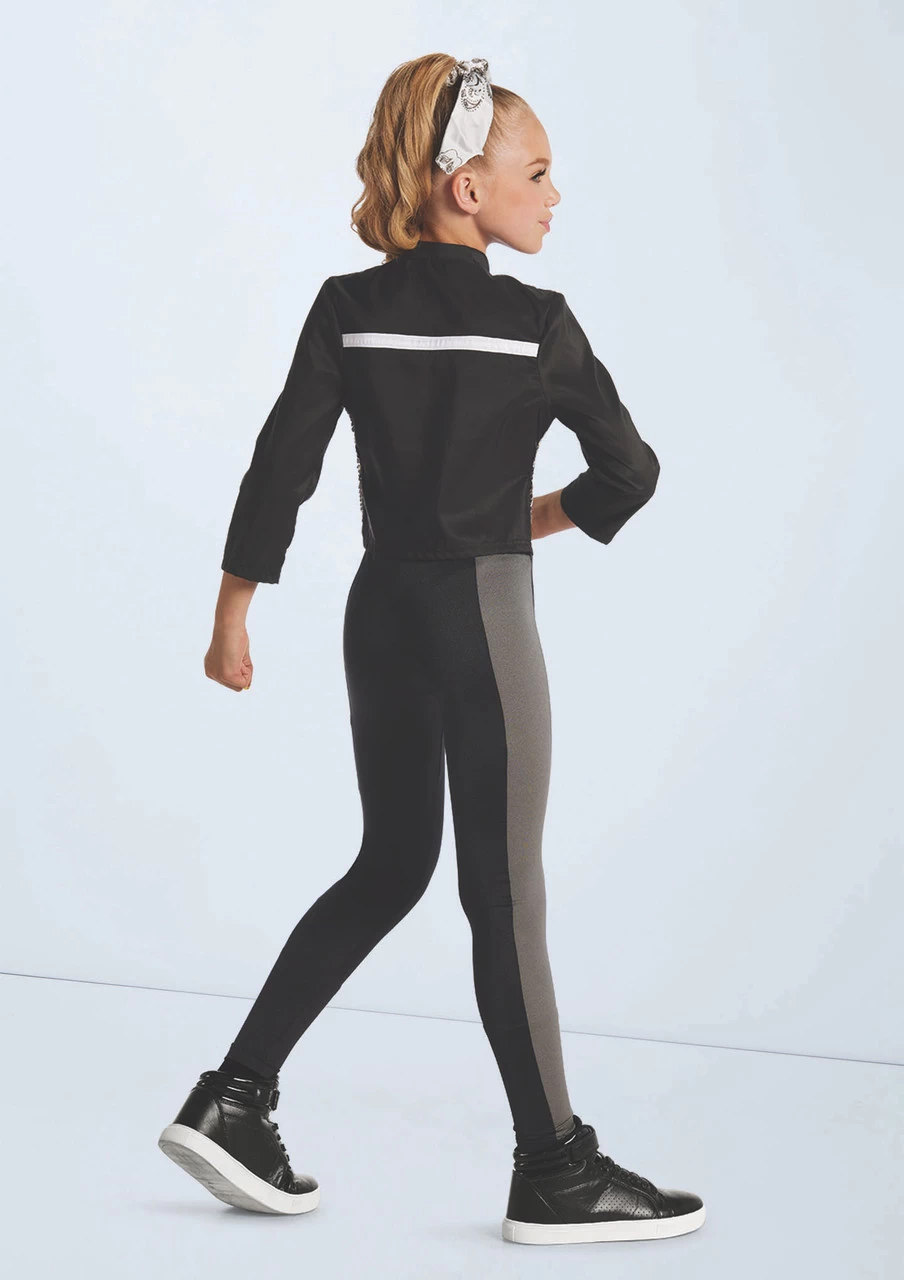 Two piece costume includes zip-up jacket and unitard