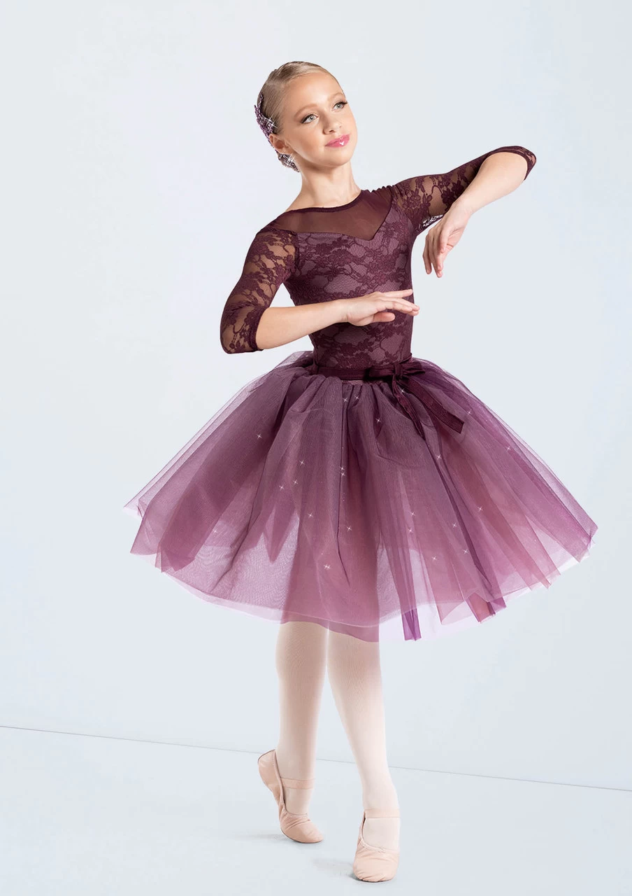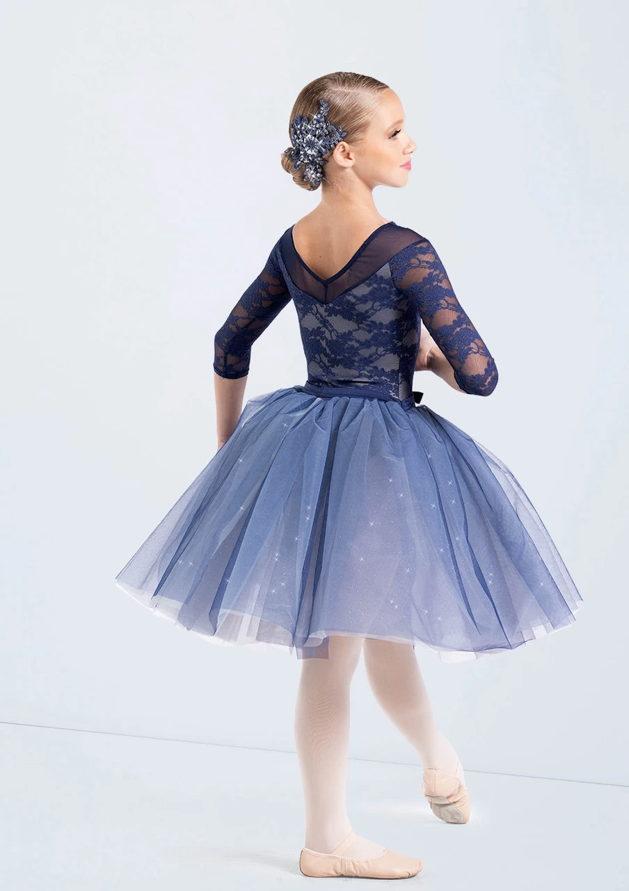 -Romantic tutu comprised of glitter mist tulle over tricot